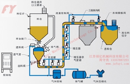 該方式常適用于較長(zhǎng)的輸送管線距離及精細(xì)的、顆粒狀的、磨蝕性和非磨蝕性的及其它難于輸送的物料。如石英砂、耐火材料、蘇打粉、熒石粉、氟化鋁、有基硅粉等。